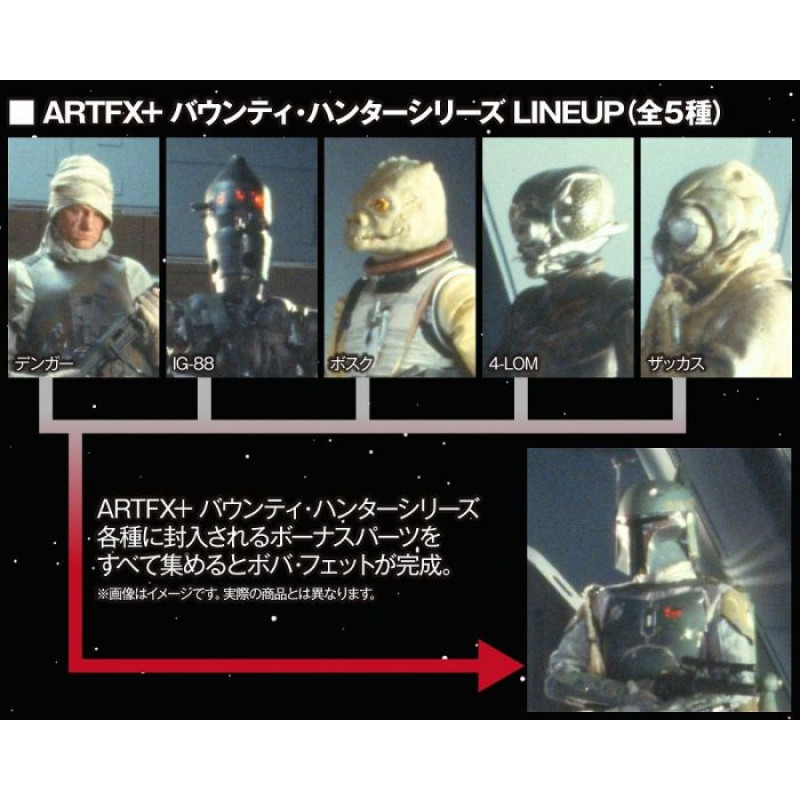 При покупке всех пяти Охотников за головами (4-LOM, Dengar, IG-88, Bossk, и Zuckuss) вы сможете собрать фигурку Бобы Фетта.